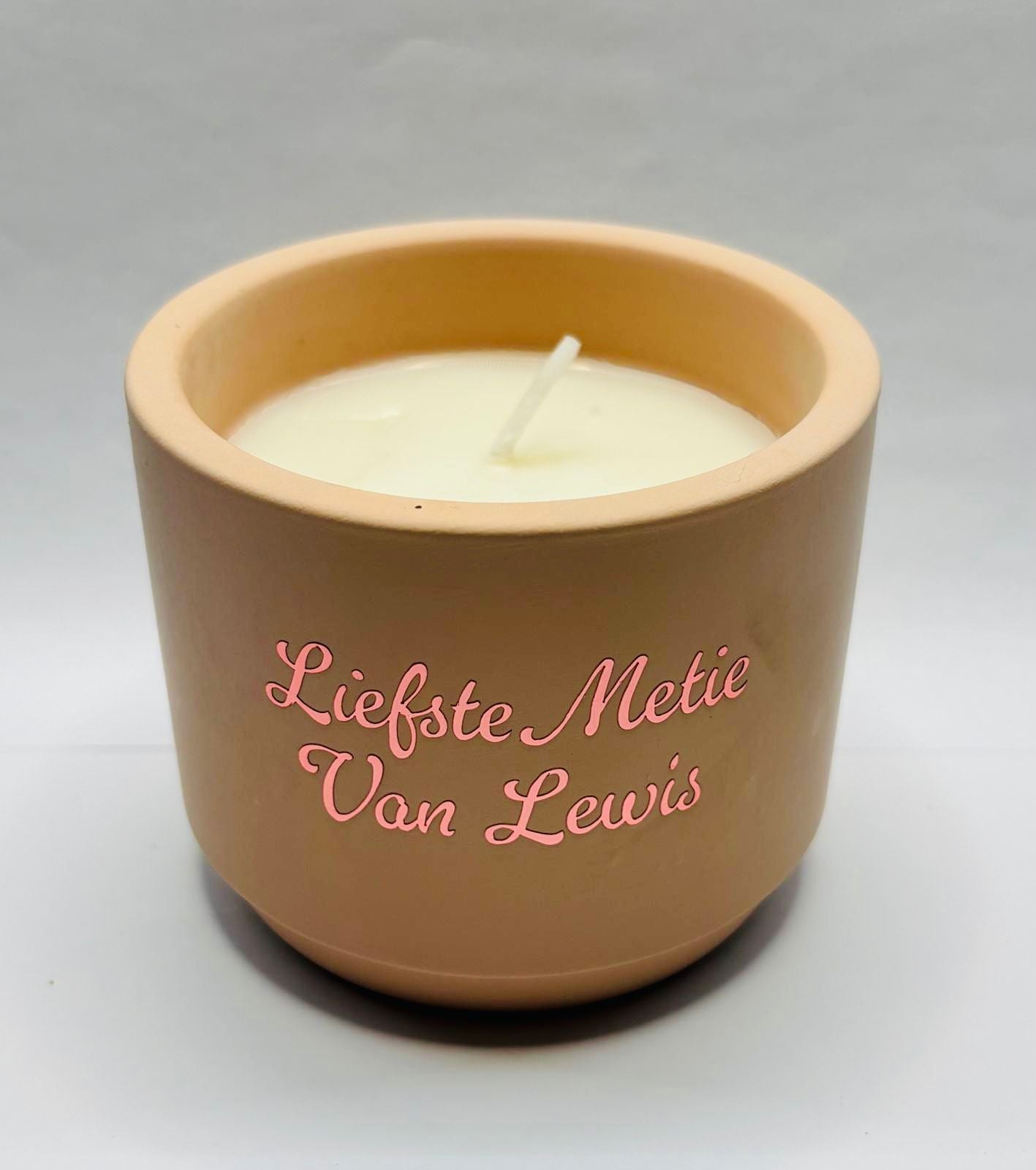 Geef je interieur een persoonlijk accent met onze handgemaakte keramieken kaars. Bij je bestelling kan je je eigen tekst doorgeven in de opmerkingen, zodat jouw kaars helemaal uniek wordt. Denk aan een naam, korte boodschap, datum of quote die voor jou iets betekent.