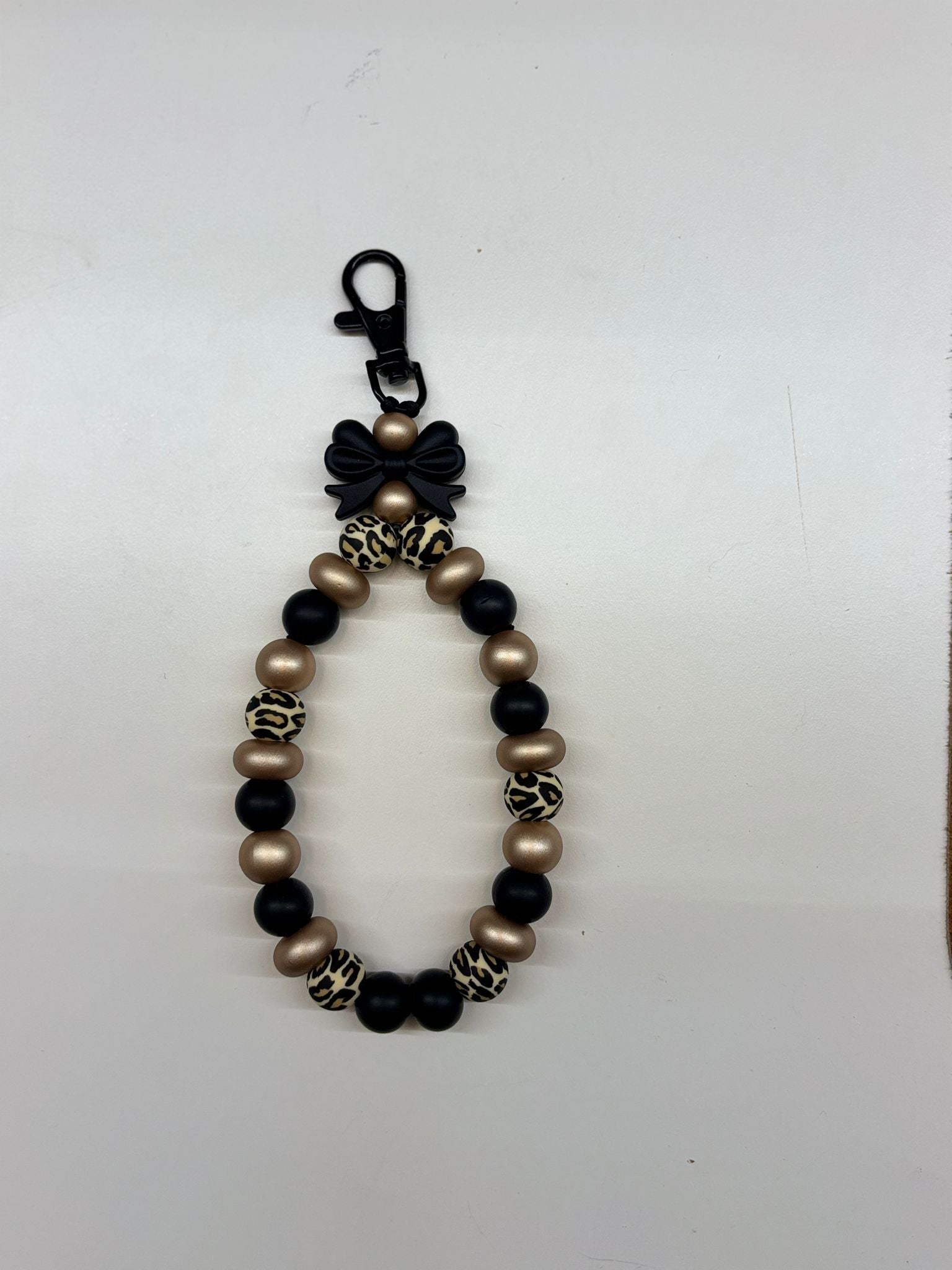 Met een combinatie van mat zwart, chique goud/beige parelglans en speelse leopard print kralen straalt dit accessoire klasse én persoonlijkheid uit.